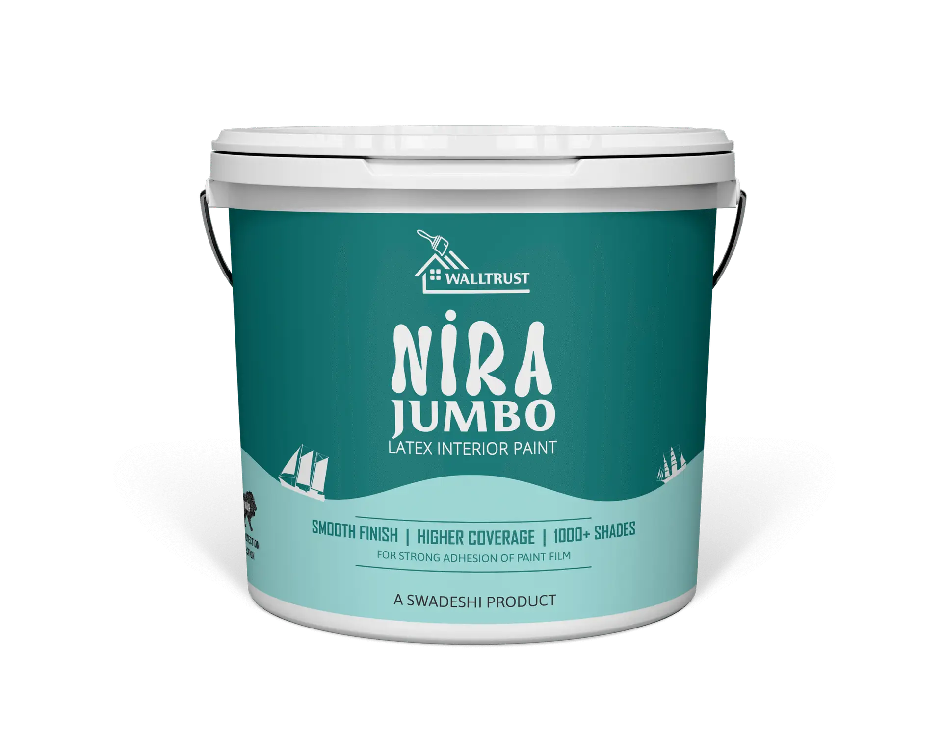 WALLTRUST NIRA JUMBO INTERIOR is a premium-quality interior emulsion formulated to enhance the beauty of indoor spaces with a smooth, elegant finish. Designed for superior coverage and durability, this paint provides excellent adhesion to a variety of wall surfaces. Its low-VOC formula ensures a safer environment indoors, making it ideal for homes, offices, and commercial interiors.